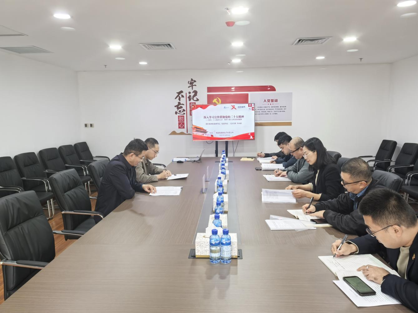 10月24日聯(lián)合產(chǎn)權(quán)黨支部開展10月黨員大會(huì)暨“不忘初心 牢記使命”主題黨日、黨章專題學(xué)習(xí),黨支部副書記主持,投控集團(tuán)黨委副書記、紀(jì)委書記車向前同志,紀(jì)檢專員楊日誠同志及支部黨員參加會(huì)議。