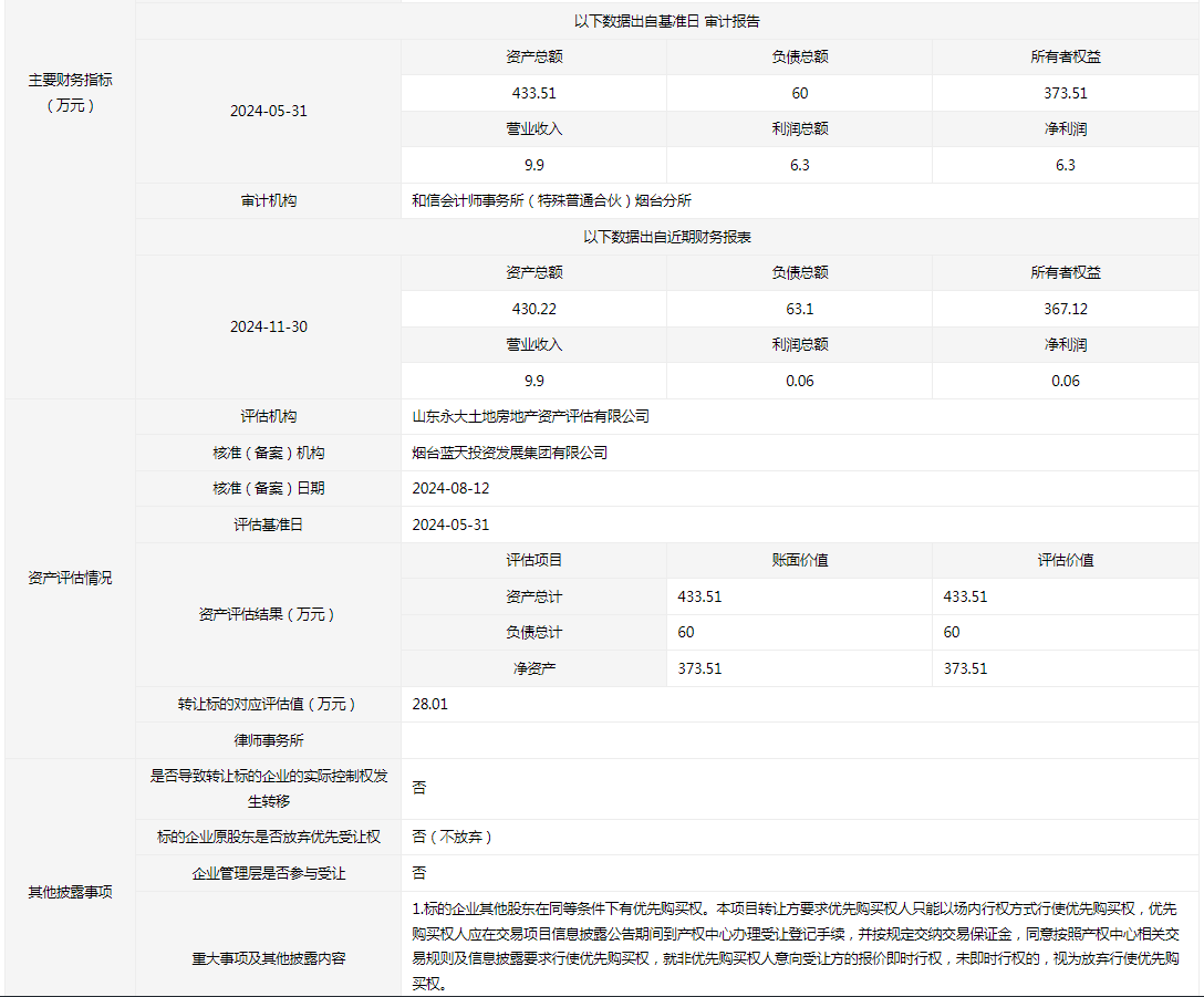 • 轉(zhuǎn)讓方:煙臺(tái)藍(lán)天投資控股集團(tuán)有限公司