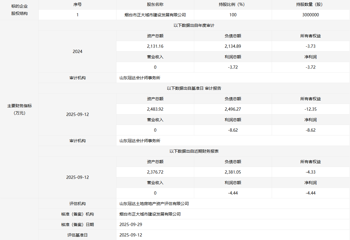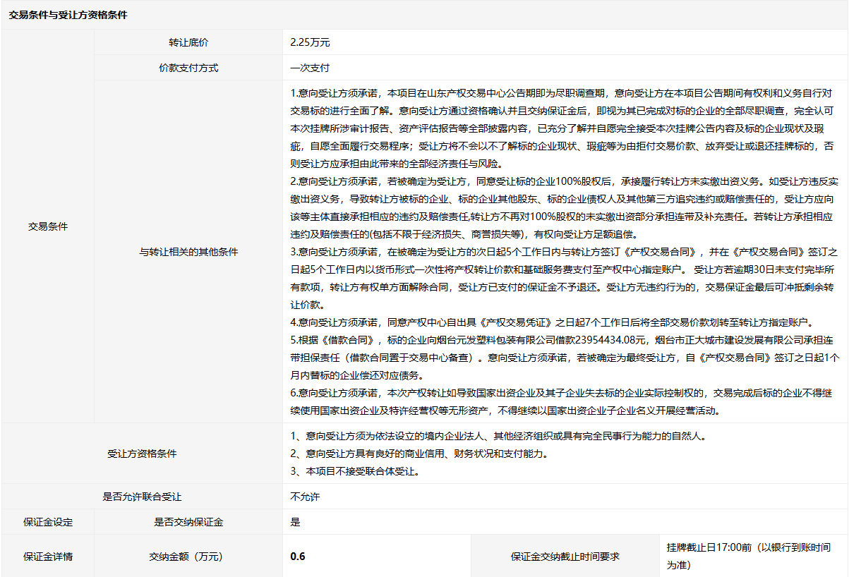 轉(zhuǎn)讓方:煙臺市正大城市建設(shè)發(fā)展有限公司