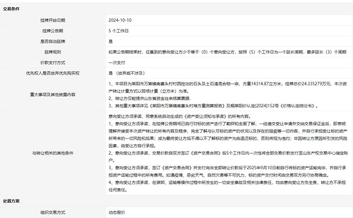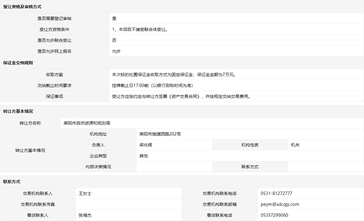 轉讓方:萊陽市自然資源和規(guī)劃局