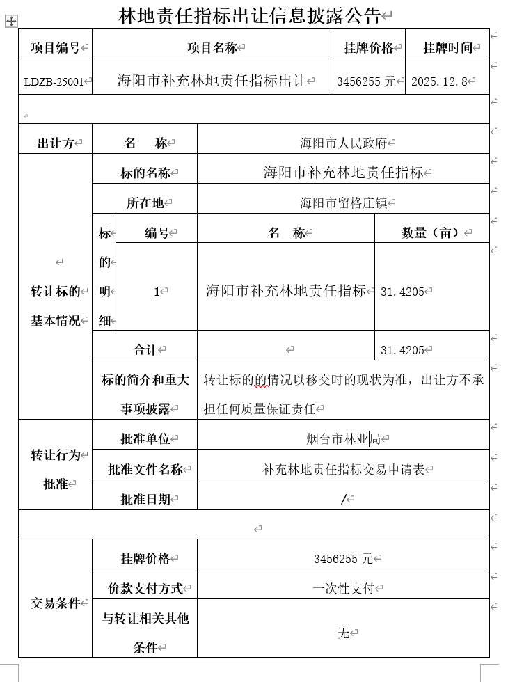 海陽市補充林地責(zé)任指標(biāo)出讓